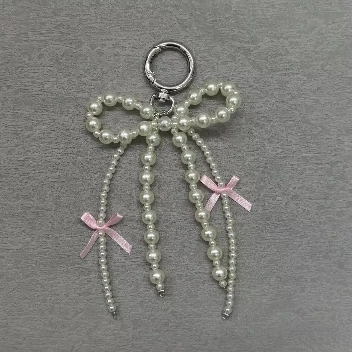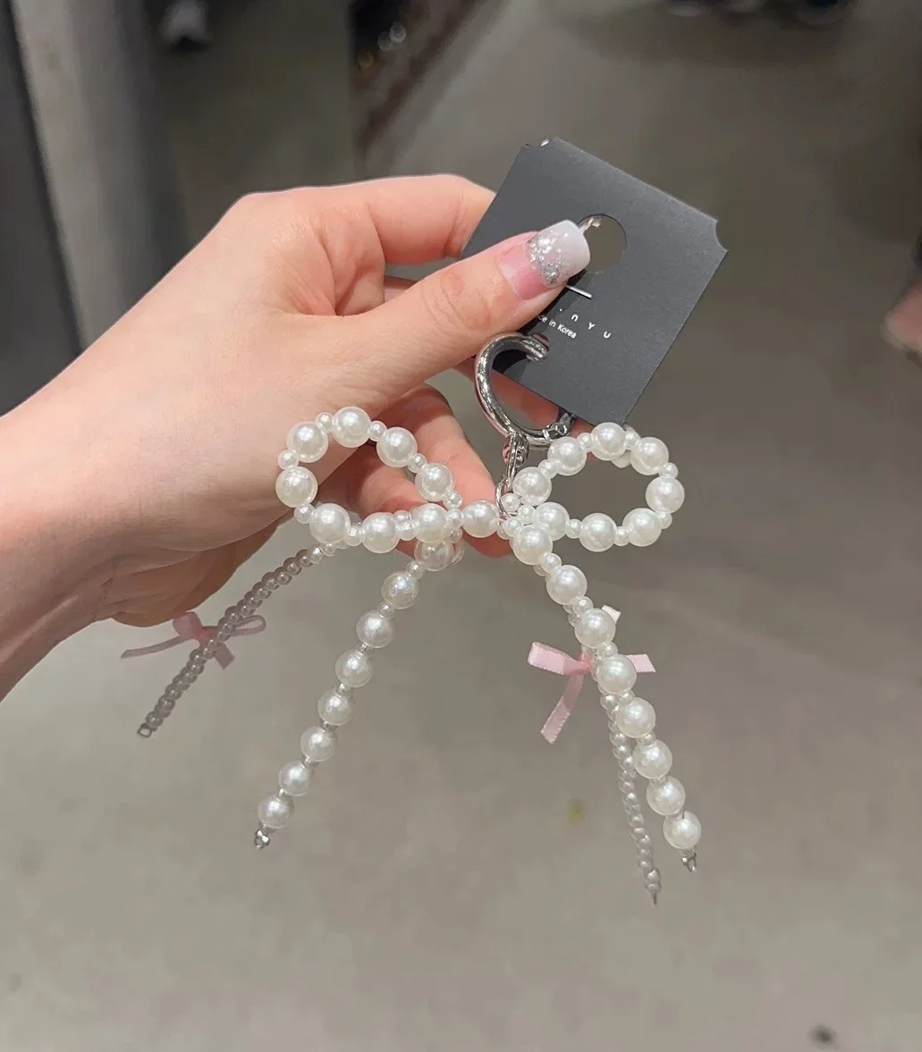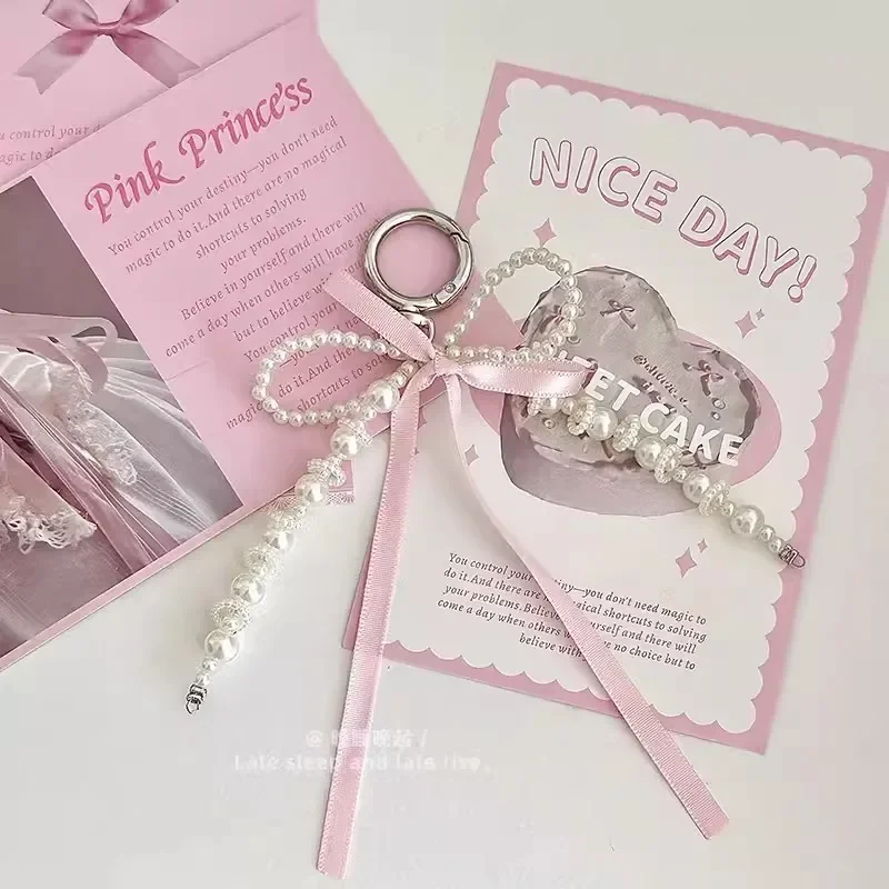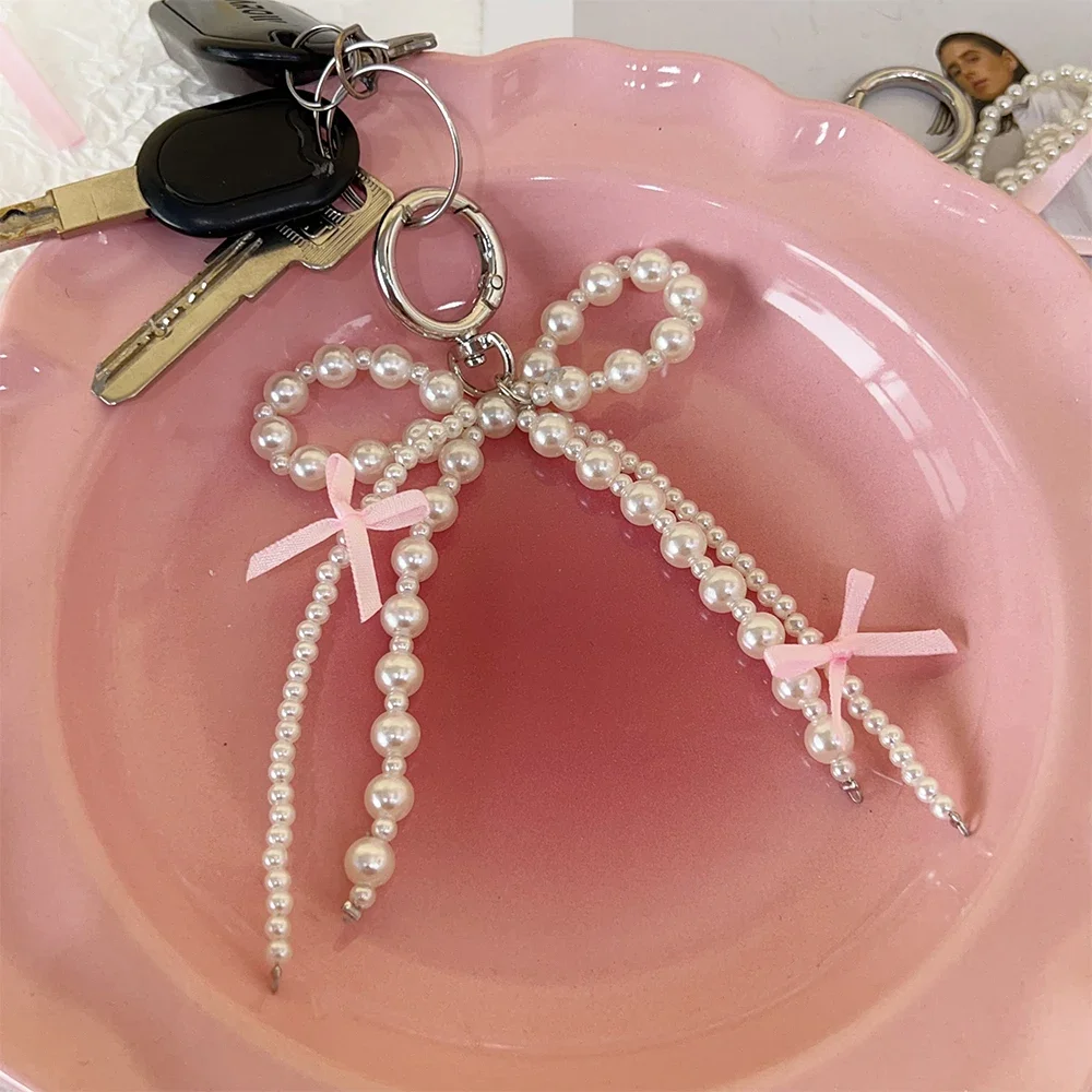 2025 New Korean Fashion Sweet Pearl Bow Keychain Heart Pendant Keyring Y2K Ins Aesthetic Holder for Girl Bag Pendant Accessories
