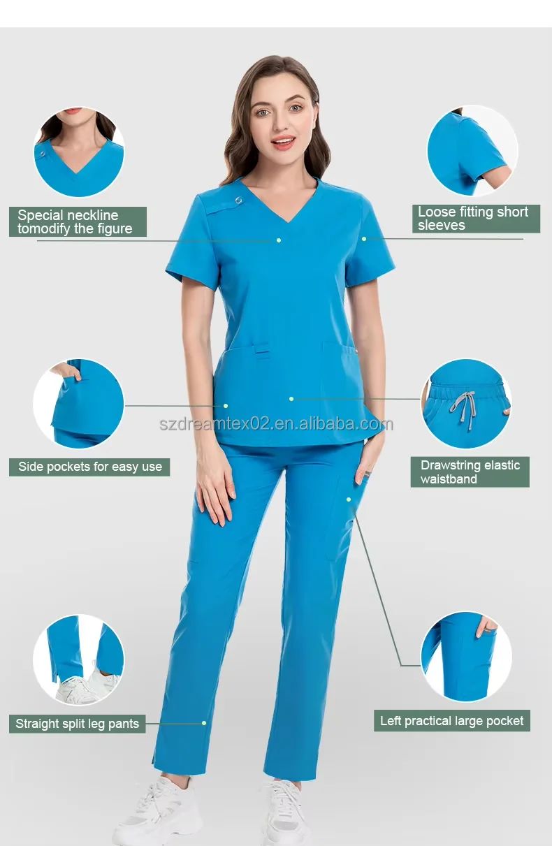 Anti-wrinkle Scrubs Uniforms Custom logo Women Nurses Scrub Suits Nurse Uniform Stretching Scrubs Uniforms Sets for Men Women