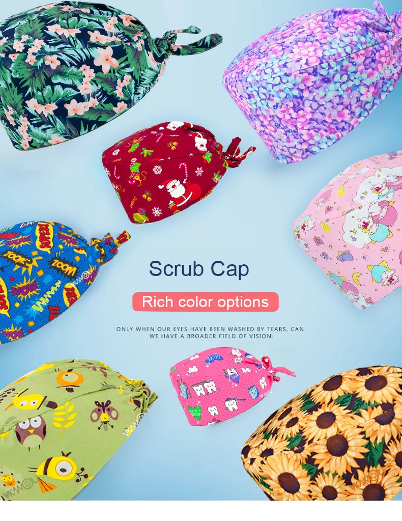 If you are tired of looking for a suitable scrub cap, just stop and look at our printed scrub cap, which has everything you need, ease of use, style and comfort. These unisex scrub caps are made of cotton material with an elastic band and for adjustment, soft and comfortable to wear, won't leave any marks on your forehead, durable and washable for a long-lasting use.
