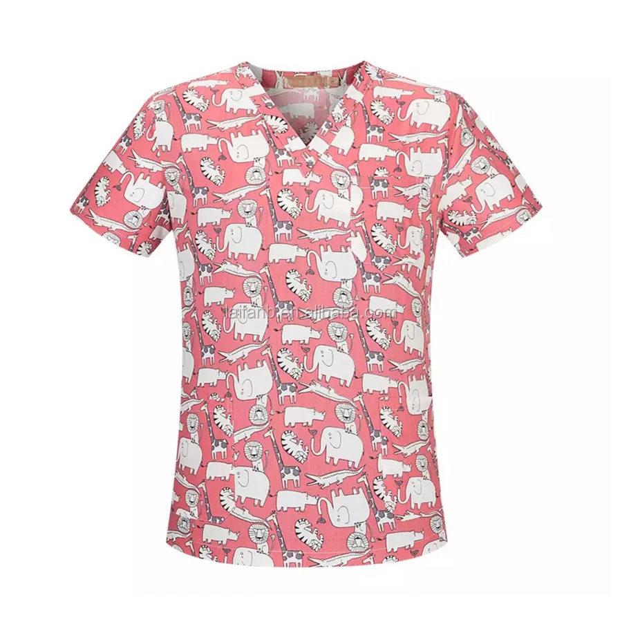 Cotton Cartoon Print Spa Uniforms Fashion Scrub Lab Coat