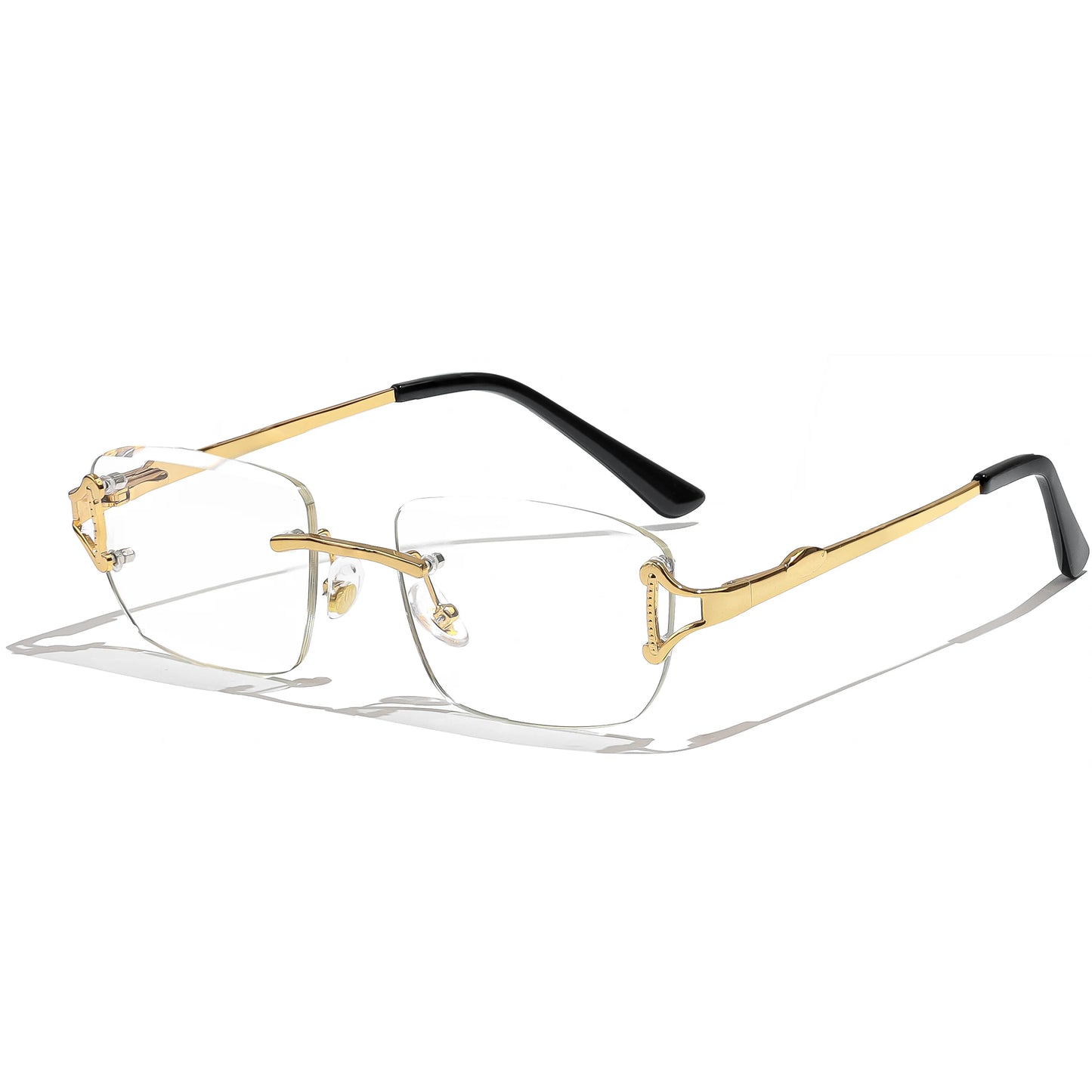 HBK Rimless Sunglasses Men Luxury Brand square Designer Glasses Gold Alloy Frame Sunglasses Diamond Cut