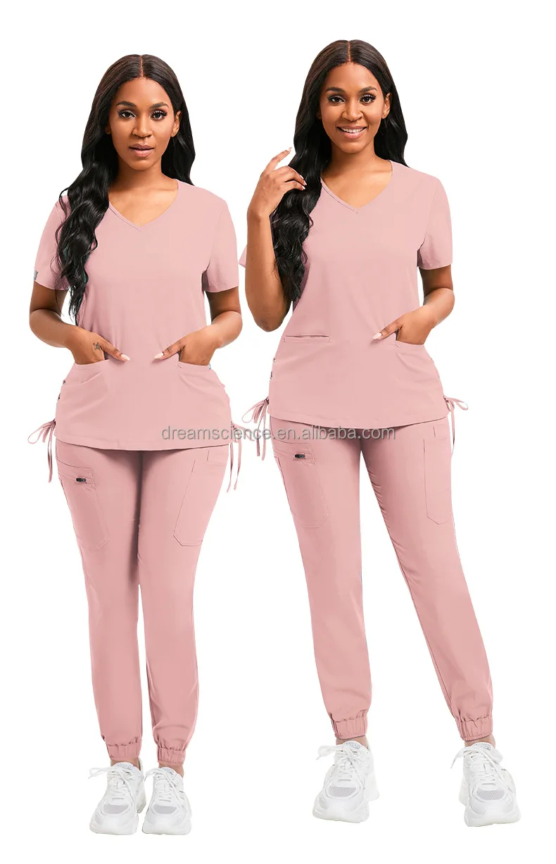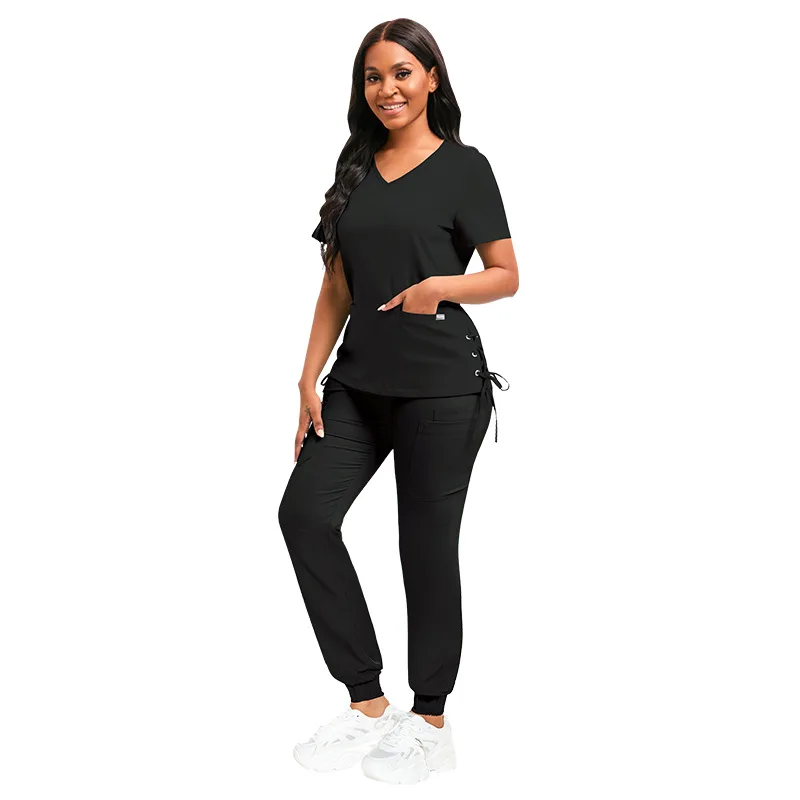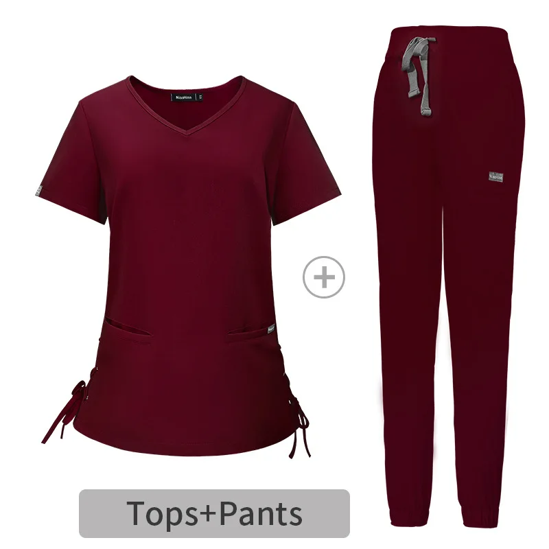 High Quality Nursing Uniform Workwear Sets Scrub Tops Jogger Pants Pet Clinic Dental Tooth Check Stretch Nurse Uniform Scrubs