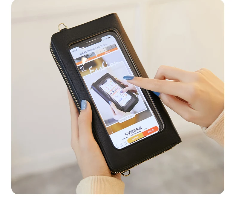 touch screen phone bag ladies purses long wallet card holder crossbody women hand bags cartera mujer leather RFID wallet women