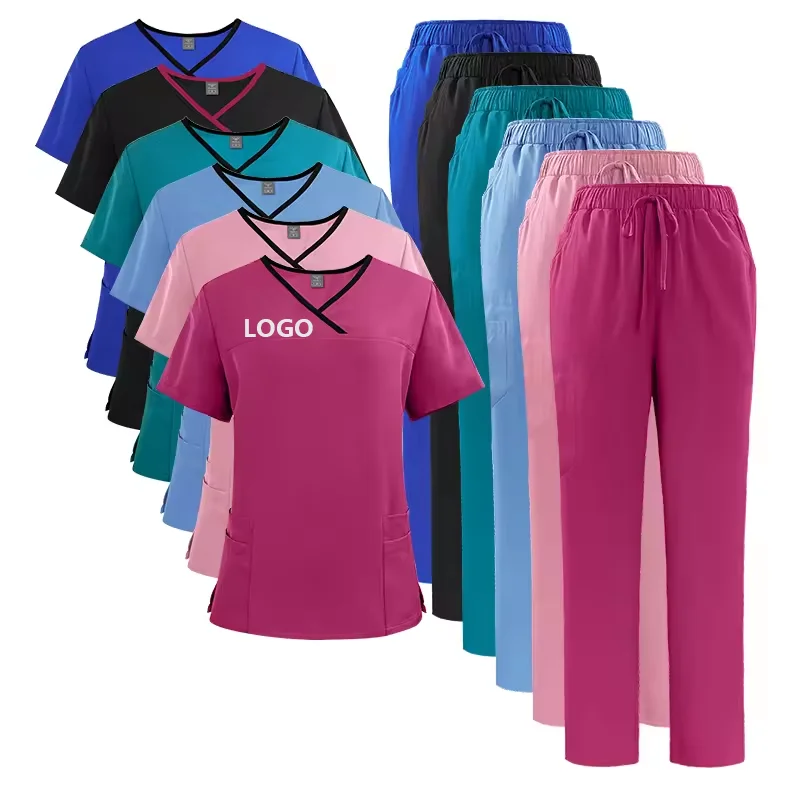 Unisex Custom LOGO Medical Scrubs Sets Nurse Jersey and Straight Pants for Beauty Dental Salon Work Hospital Uniforms